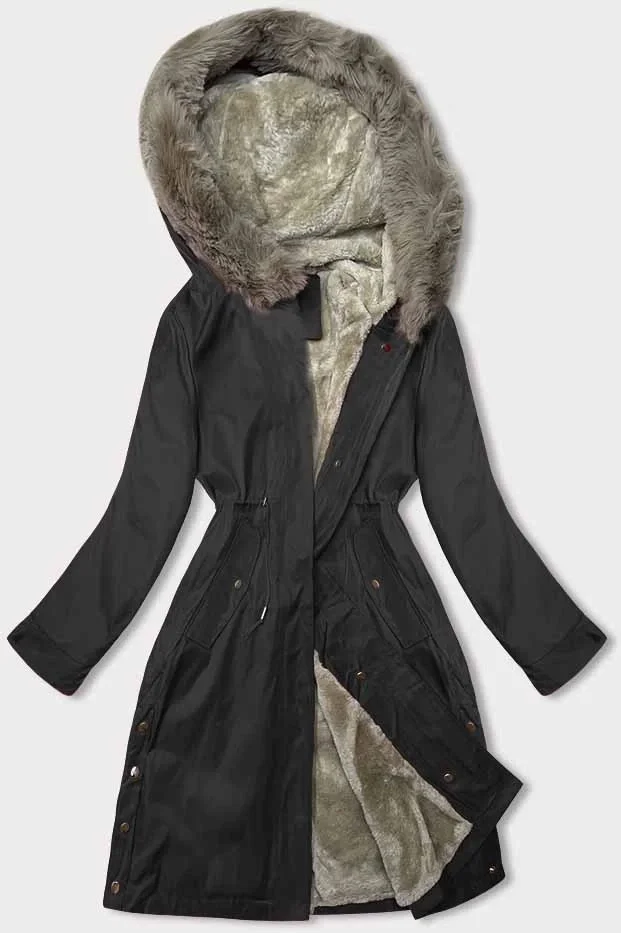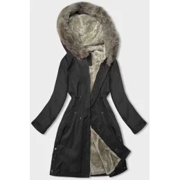 Černá dámská bunda parka s kožešinovou podšívkou (5M3180-392)