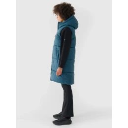 Dámská dlouhá vesta se syntetickým peřím, které je odolnější a snadněji se udržuje než přírodní peří. I když je vystavena vlhkosti, déle si zachovává své izolační vlastnosti a mnohem rychleji schne.