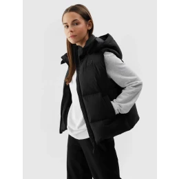Dámská krátká péřová vesta se zvýšeným objemem a hmotností výplně je ideální volbou pro chladné a zimní dny při každodenních nebo sportovních aktivitách.