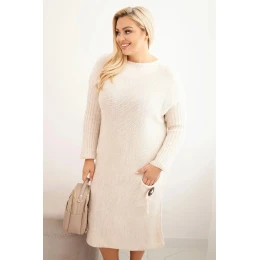 Dámská pletená svetrková šaty Plus Size s mohairovým oversized s kapsou béžová
