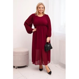 Dámská plisovaná sukýnka Plus Size z viskózy a s dlouhým rukávem bordó
