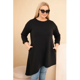 Dámská plus size sukně z viskózy s volným střihem a dlouhým rukávem černá