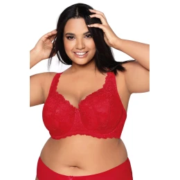 Dámská podprsenka 053/22 Carmela red plus MAT - červená barva - z krajky s květinovým motivem - vyztužená - vnitřní strana košíčků podšitá bavlnou - boční části s kosticí - nastavitelná a neodepínatelná krajková ramínka - nadzvedává a přidržuje poprsí