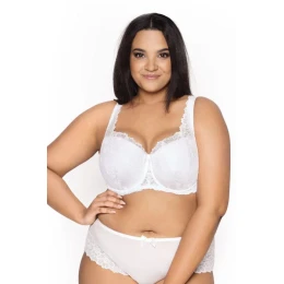 Dámská podprsenka 053/22 Carmela white plus MAT - bílá barva - z krajky s květinovým motivem - vyztužená - vnitřní strana košíčků podšitá bavlnou - boční části s kosticí - nastavitelná a neodepínatelná krajková ramínka - nadzvedává a přidržuje poprsí