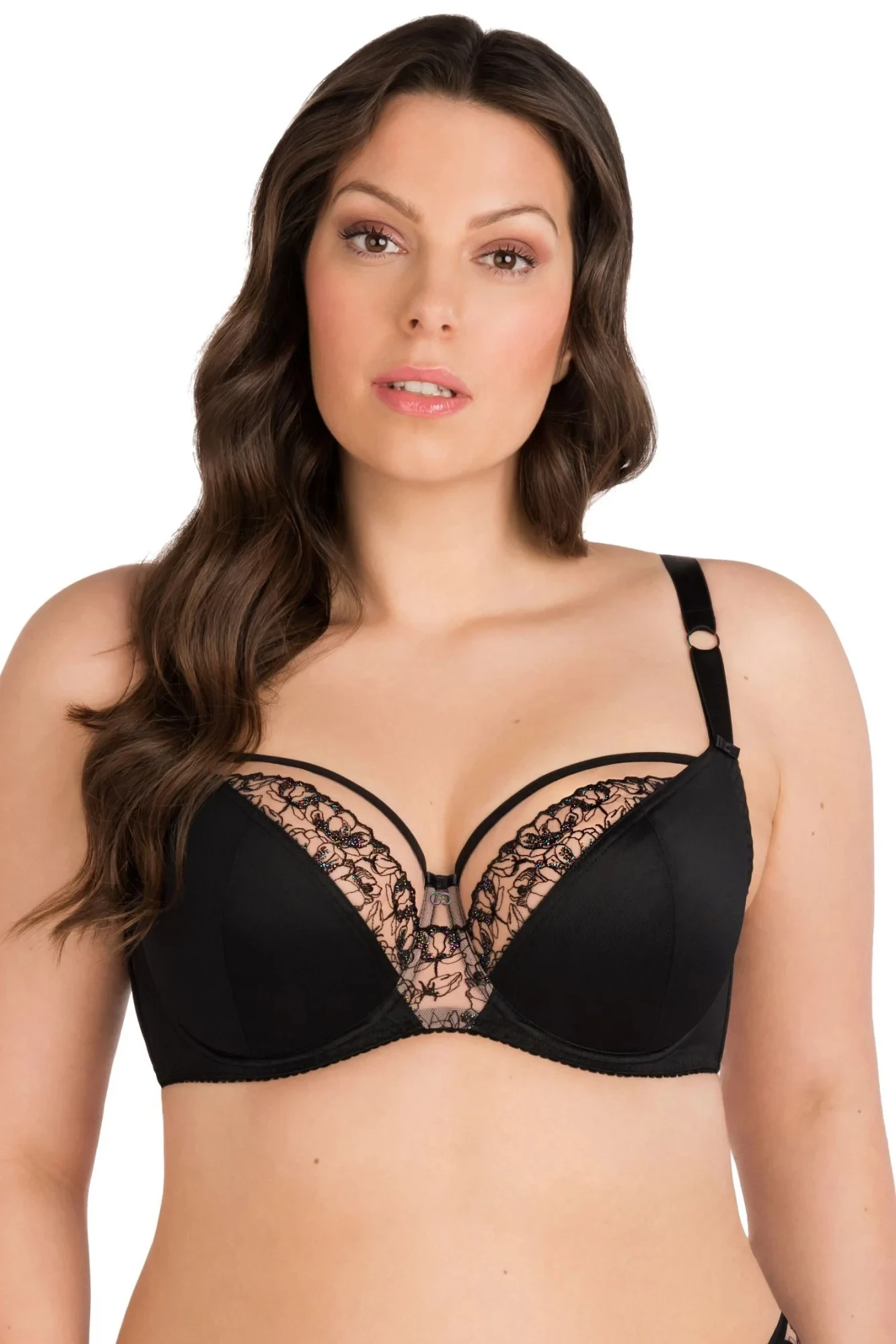 Dámská podprsenka 101 Zoya GORSENIA - černá barva - vyztužená podprsenka - krajkové košíčky podšité bavlnou - s kosticemi - obvod ze síťovaného tylu - ramínka nastavitelná a odepínatelná
