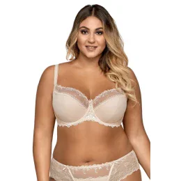 Dámská podprsenka 1030 Novato beige AVA - béžová barva - typ semi soft - košíčky z hladkého mikrovlákna - horní část zdobená krajkou - zpevněné kosticí - ramínka neodepínatelná - zapínání na dva nebo tři háčky s třístupňovým nastavením