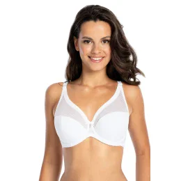 Dámská podprsenka 1058 Sonia white GAIA - bílá barva - z proužkovaného mikrovlákna - horní linie s pružným lemováním - košíčky podšité bavlnou - posuvná a neodepínatelná ramínka
