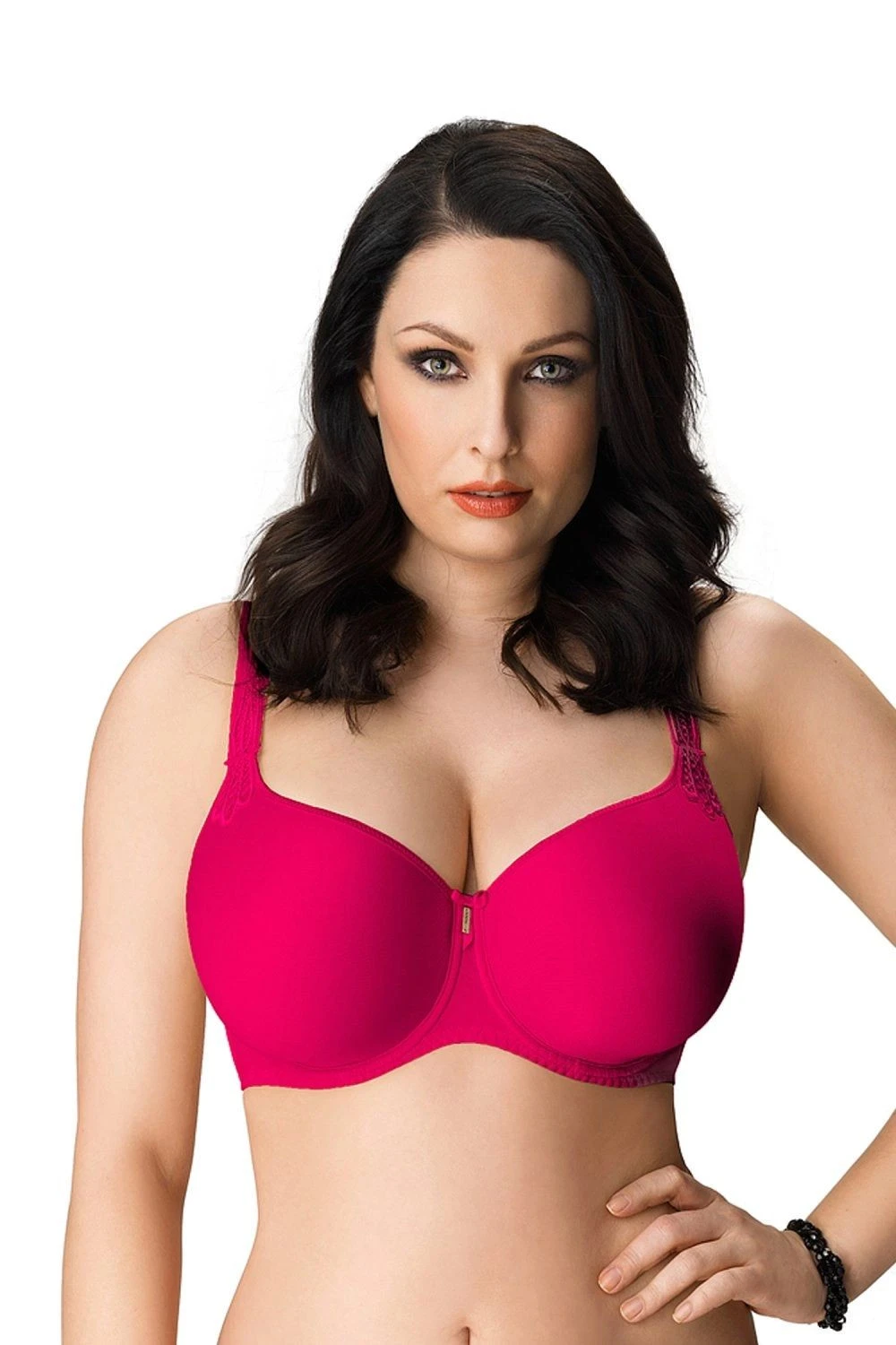Dámská podprsenka 17871 Virginia raspberry CORIN - rubínová barva - neodnímatelná ramínka, zdobená výšivkou ve stejné barvě - vyztužené košíčky - jednoduchý design - mezi košíčky decentní mašlička na ozdobu