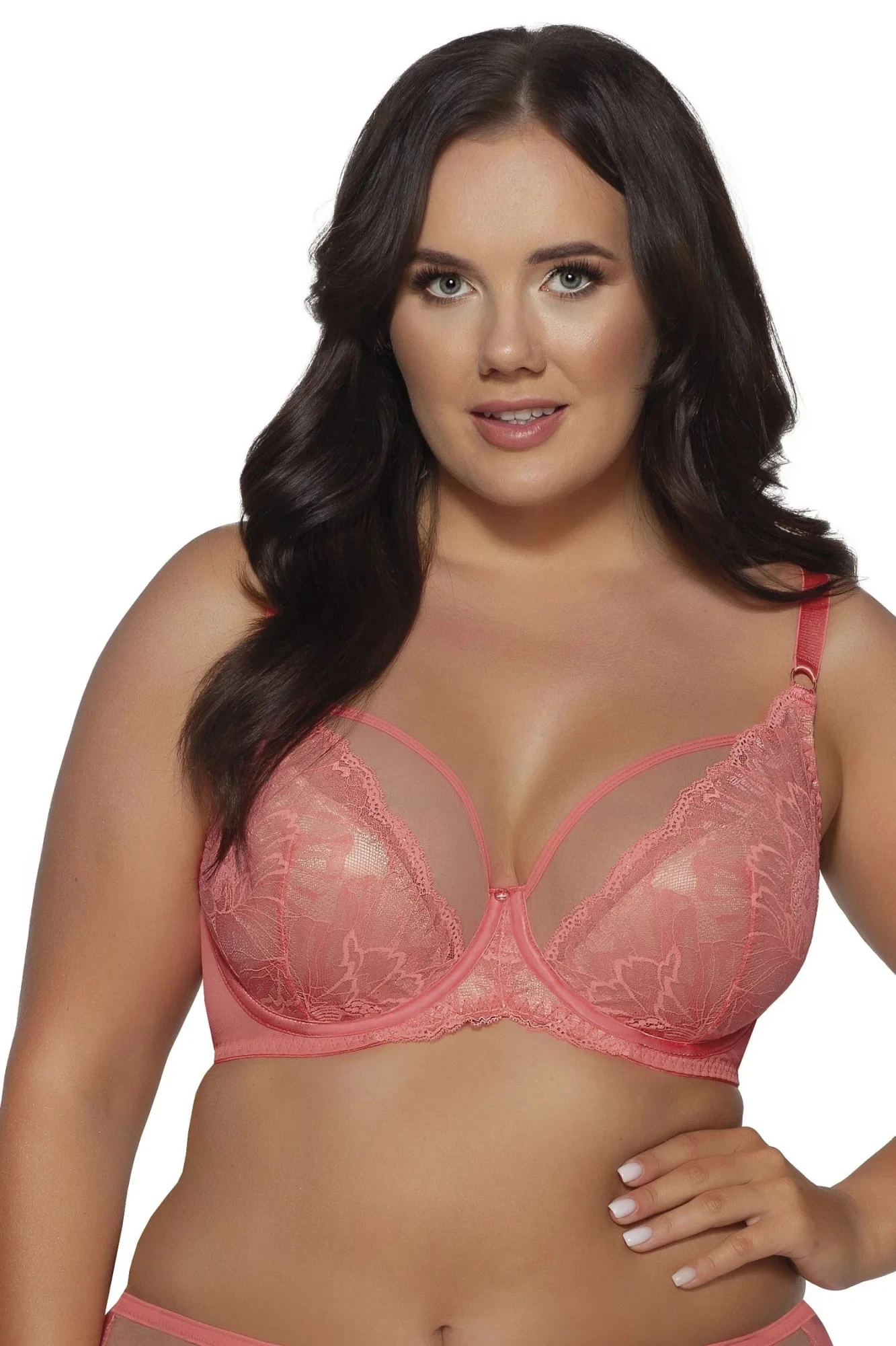 Dámská podprsenka 1824 Venus coral AVA - korálová barva - košíčky z kombinace jemné krajky a síťoviny - mezi košíčky mašlička s ozdobou - zadní část a boky jsou pružné lycry - ramínka jsou nastavitelná a neodepínatelná - zapínání na dva nebo tři háčky podle velikosti