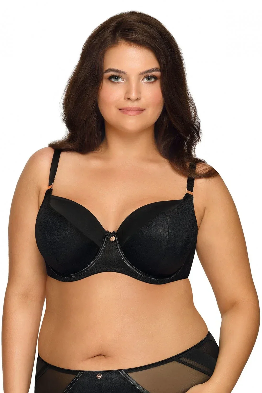 Dámská podprsenka 1920 Ava - v černé barvě - vyztužené košíčky - vyrobená ze vzorované lesklé látky - v horní linii modelu je tylová síťovina - ramínka není možné odepnout