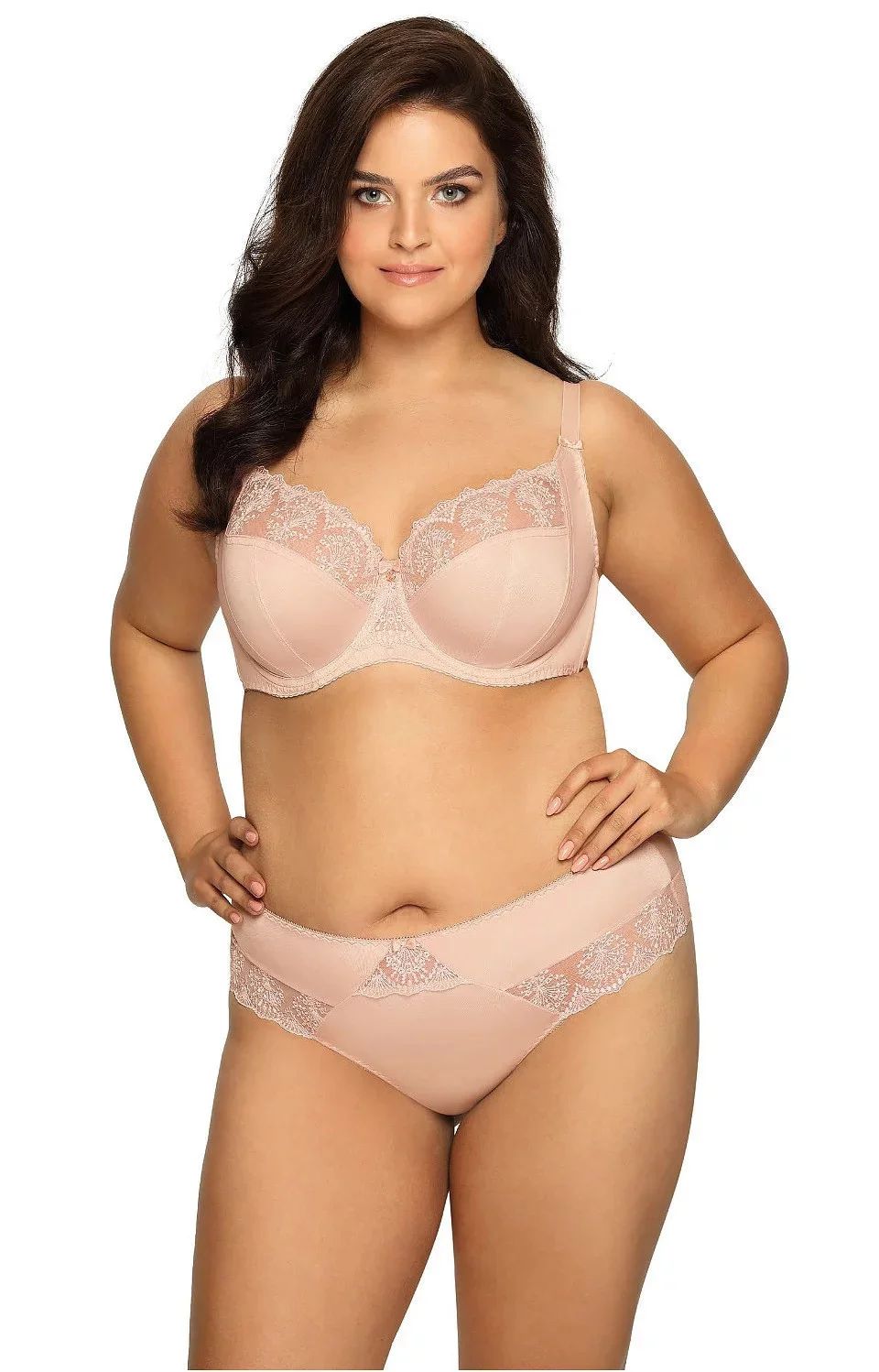V horní linii modelu je tylová síťovina ozdobená květinovým motivem. Díky bočnímu panelu tento model stabilně nadnáší poprsí. Ramínka není možné odepnout. Šířka ramínek závisí na velikosti a rozměru podprsenky. Spojení košíčků a ramínka zdobí saténové mašličky. Podprsenka má střih a konstrukci typu 1130.
