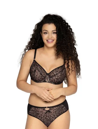Košíčky s kosticemi jsou vyrobené z krajky s květinovým motivem a jsou podšité béžovou bavlnou. Mezi košíčky je ozdobný prvek s nápisem AVA. Obvod modelu tvoří pružný tyl. Obvod není zpevněný bočními kosticemi. Ramínka je možné nastavit, ale nelze je odepnout. Šířka ramínek závisí na velikosti a rozměru podprsenky. Model má střih a konstrukci typu 1030.