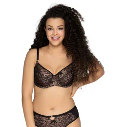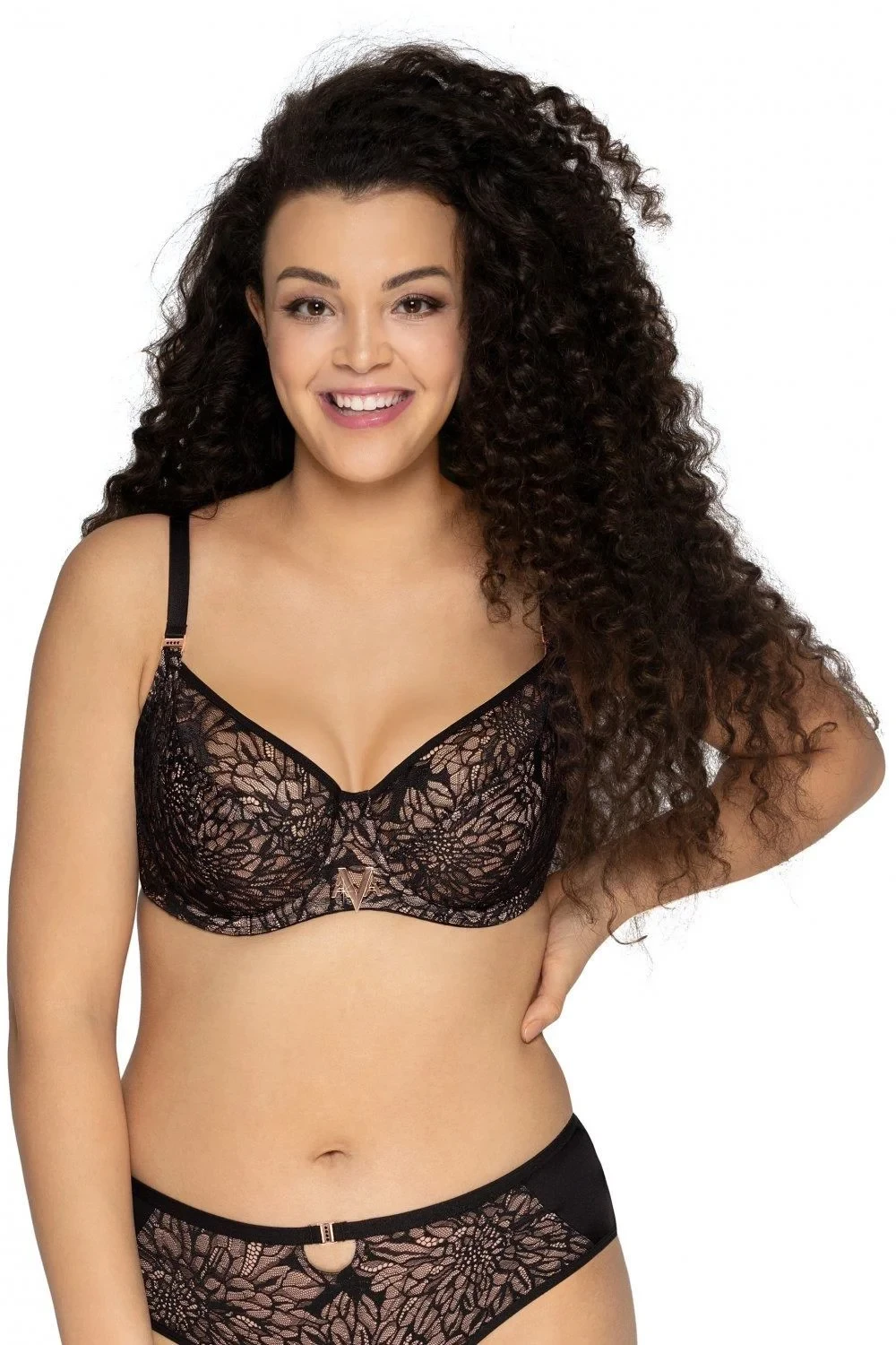 Dámská podprsenka 1955 Let´s get loud AVA - černá barva - krajkové košíčky s květinovým motivem - podšité bavlnou béžové barvy - vyztužená kosticemi - obvod z elastického tylu - nastavitelná a neodepínatelná ramínka