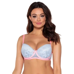 Dámská podprsenka 2001 AVA - šedá barva - typ push up - kontrastní barvy - vyjímatelné vycpávky - zdobená krajkou - odepínatelná ramínka - zapínání na 2 háčky s dvou nebo třířadým nastavením