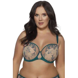 Dámská podprsenka 2087 Rafia AVA - smaragdová barva - typ semi soft - košíčky podšité měkkou, béžovou pěnou - zdobené jemnou výšivkou - elastický transparentní obvod - zapínání na dva nebo tři háčky s třístupňovým nastavením