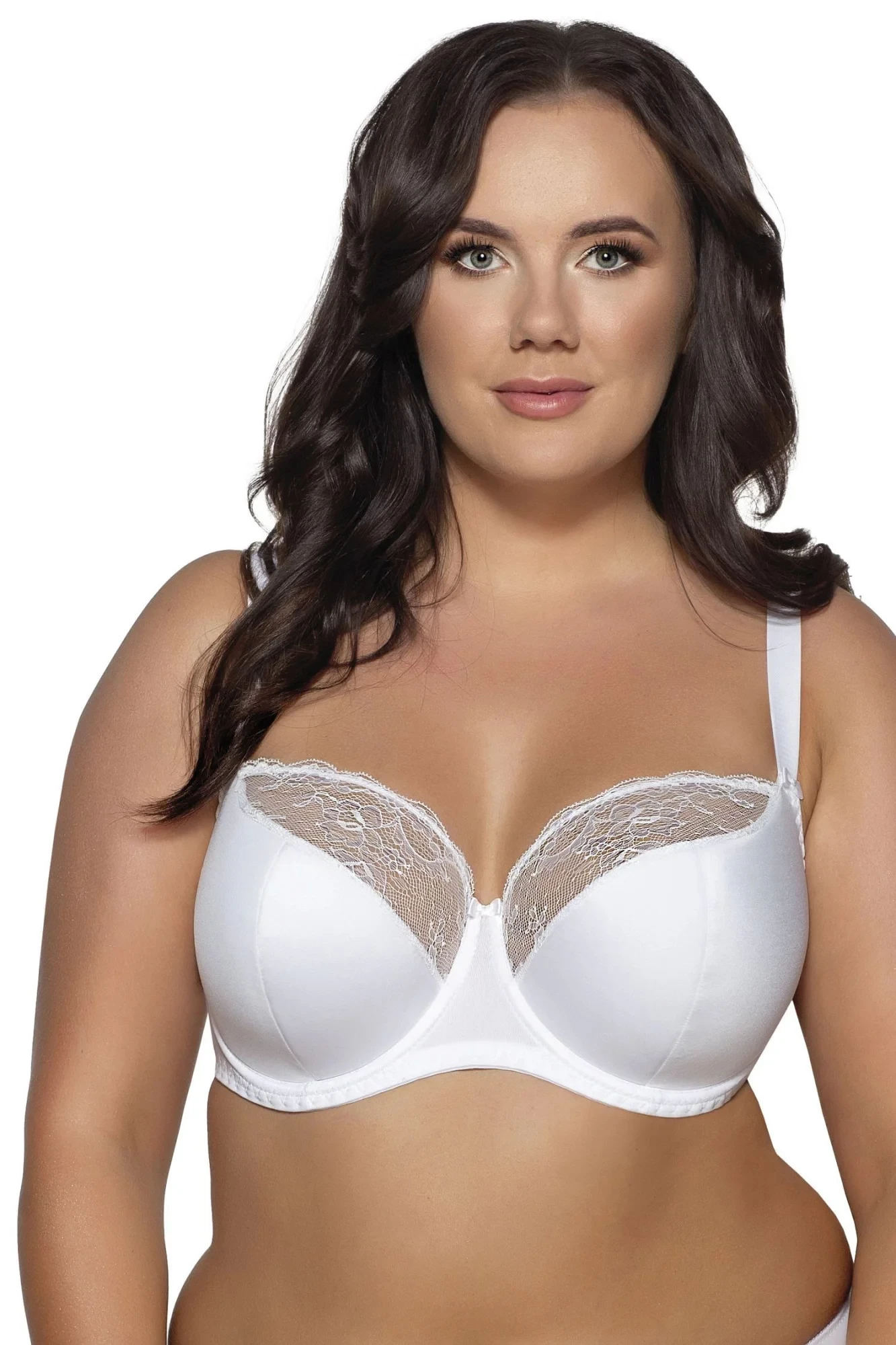 Dámská podprsenka 2110 Azalea white AVA - bílá barva - typ semi soft - košíčky z mikrovlákna vyztužené pěnou - vyztužené kosticemi - horní část zdobená krajkou - ramínka nastavitelná a neodepínatelná - zapínání na dva nebo tři háčky s třístupňovým nastavením