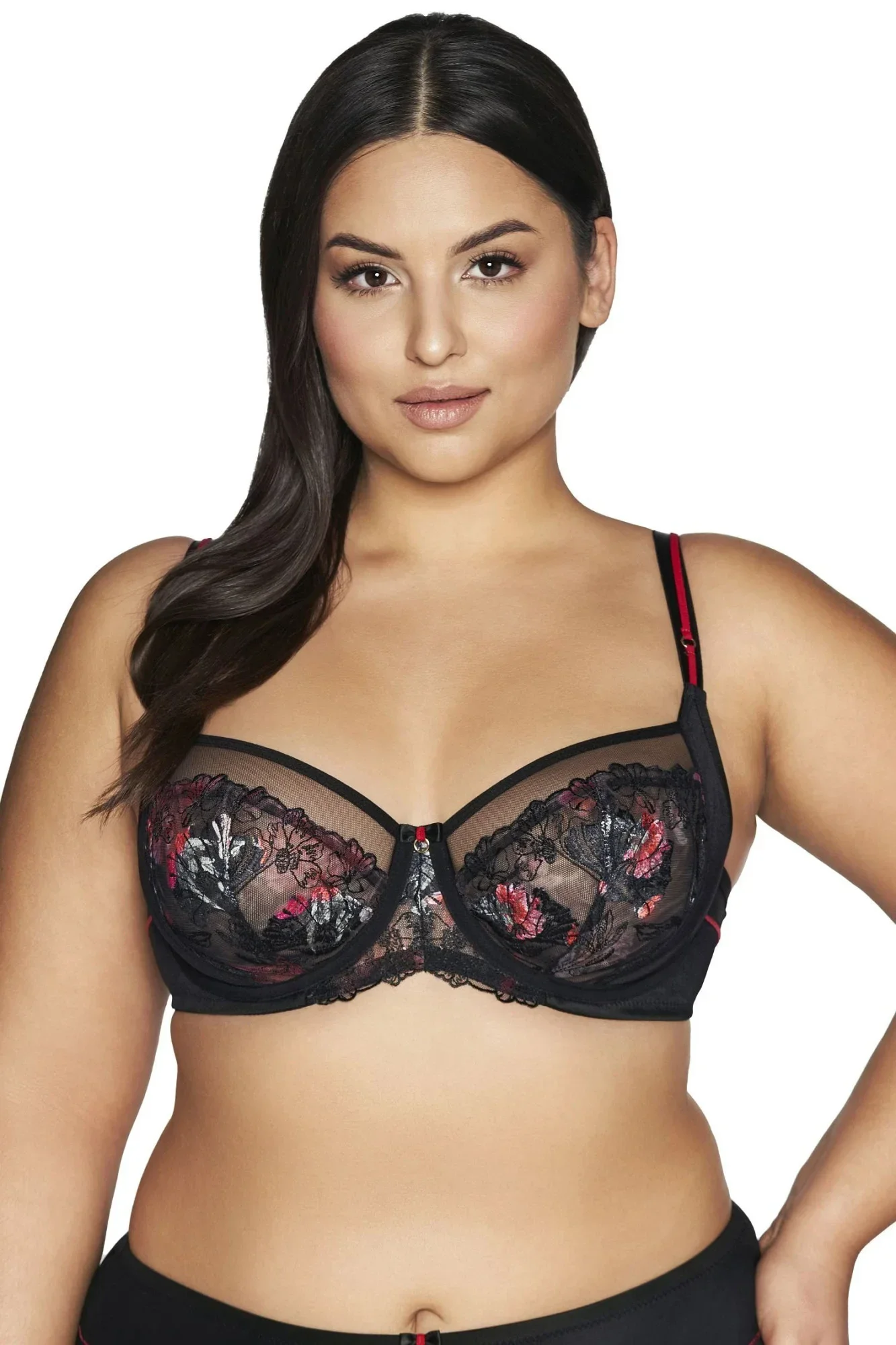 Dámská podprsenka 2122 Intense plus AVA - černá barva - měkká podprsenka - s boční podporou - košíčky z jemné průhledné krajky - s kosticemi - mezi košíčky mašlička - regulovatelná ramínka ozdobená červeným páskem - zapínání pomocí klasických háčků s třístupňovým nastavením