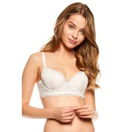 Dámská podprsenka 36157 Misha light grey HENDERSON - světle šedá barva - push up - košíčky z krajky s květinovým motivem - kostice - vyjímatelné vycpávky - nastavitelná a odepínatelná ramínka - pod poprsím je pružná páska s mašličkou
