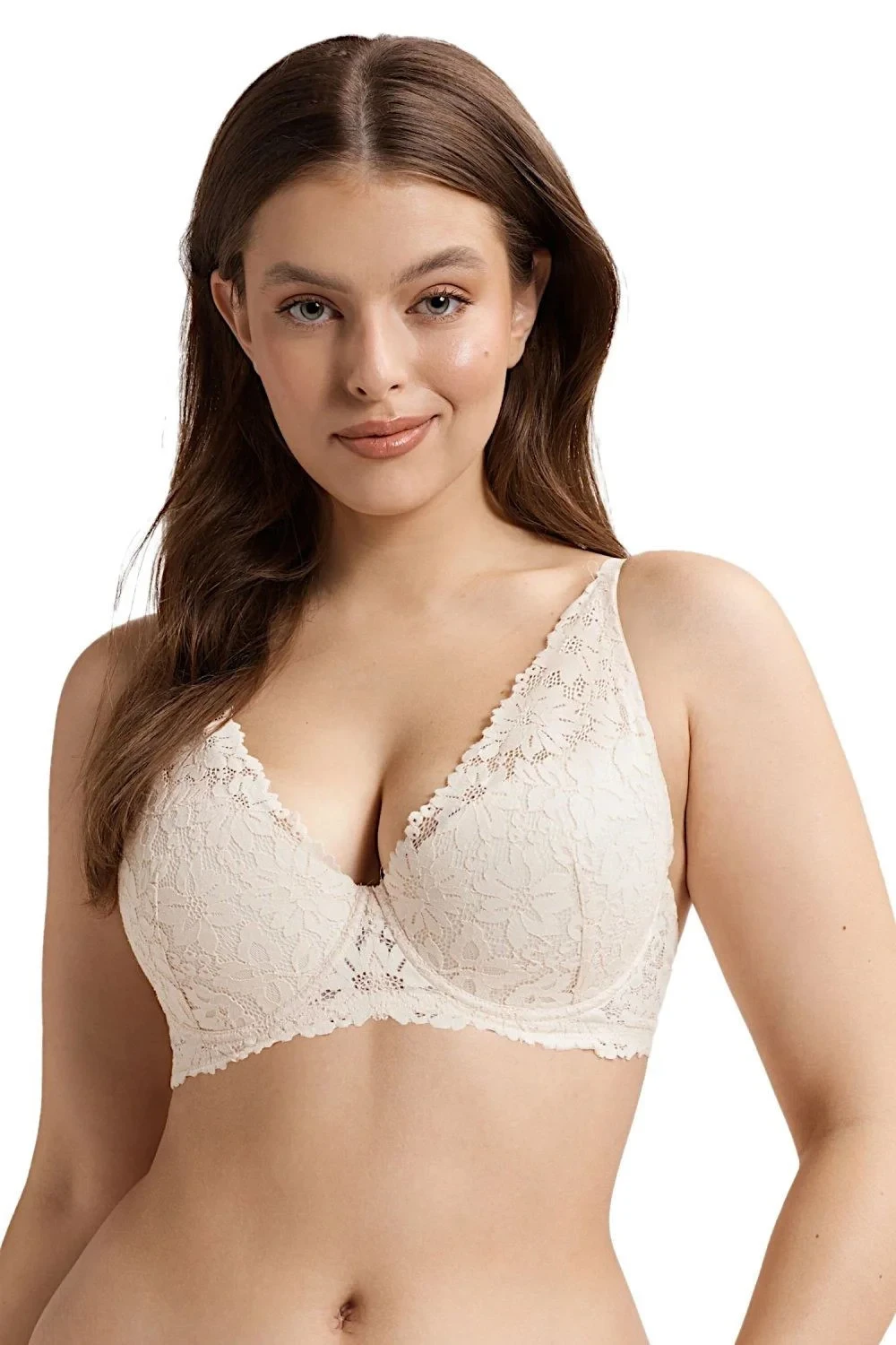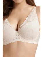 Dámská podprsenka 40849 Halsey2 HENDERSON - krémová barva - push up košíčky - kostice - košíčky zdobené tylovou krajkou s květinovým motivem - vyjímatelné vycpávky - nastavitelná a neodepínatelná ramínka - zapínání na dva háčky s třístupňovým zapínáním