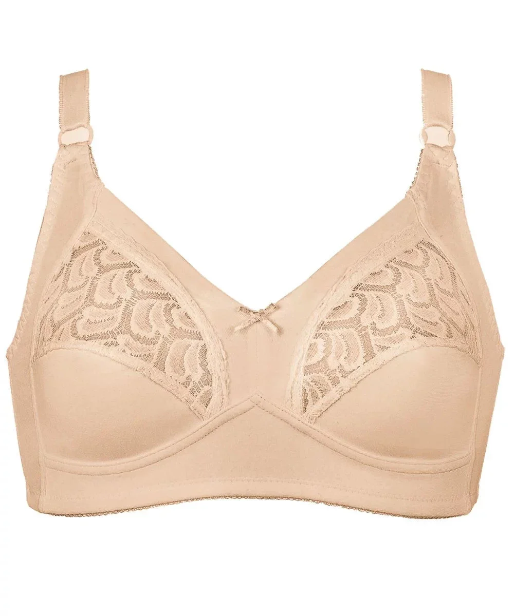 Podprsenka bez kostic z mikrofáze a elastické krajky. Pohodlná, funkční, příjemná, dobře padnoucí, se širokými šitými-zdravotními ramínky. Tato podprsenka je určena pro ženy s větším poprsím. Široká nastavitelná ramínka zaručují pohodlí.
