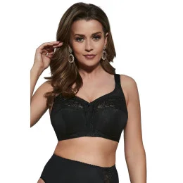 Dámská podprsenka 577 Joanna black VIKI - černá barva - silnější ramínka - nevyztužené košíčky s kosticemi - netradiční střih - košíčky jsou zdobené jemnou krajkou - mezi košíčky decentní mašlička na ozdobu