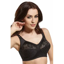 Podprsenka pro ženy s větším poprsím 579 Viki - je ušitá z krajky - vnitřek košíčků je podšitý jemnou bavlnou - má široká ramínka a třístupňové zapínání - krásně podtrhne tvar poprsí