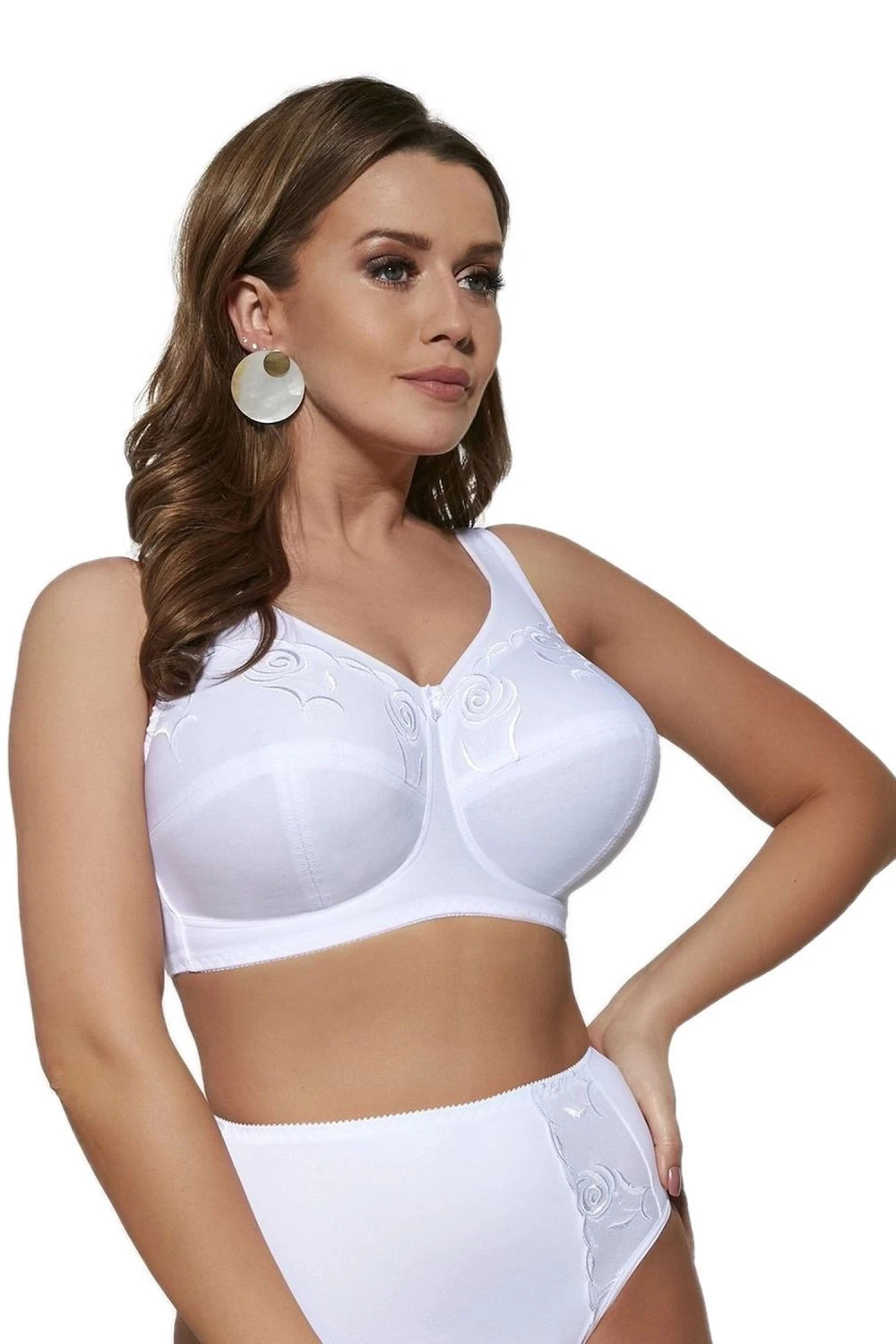Dámská podprsenka 581 Zofia white VIKI - bílá barva - dekolt zdobený efektní výšivkou s květinovým motivem - mezi košíčky je saténová mašlička - pohodlná široká ramínka