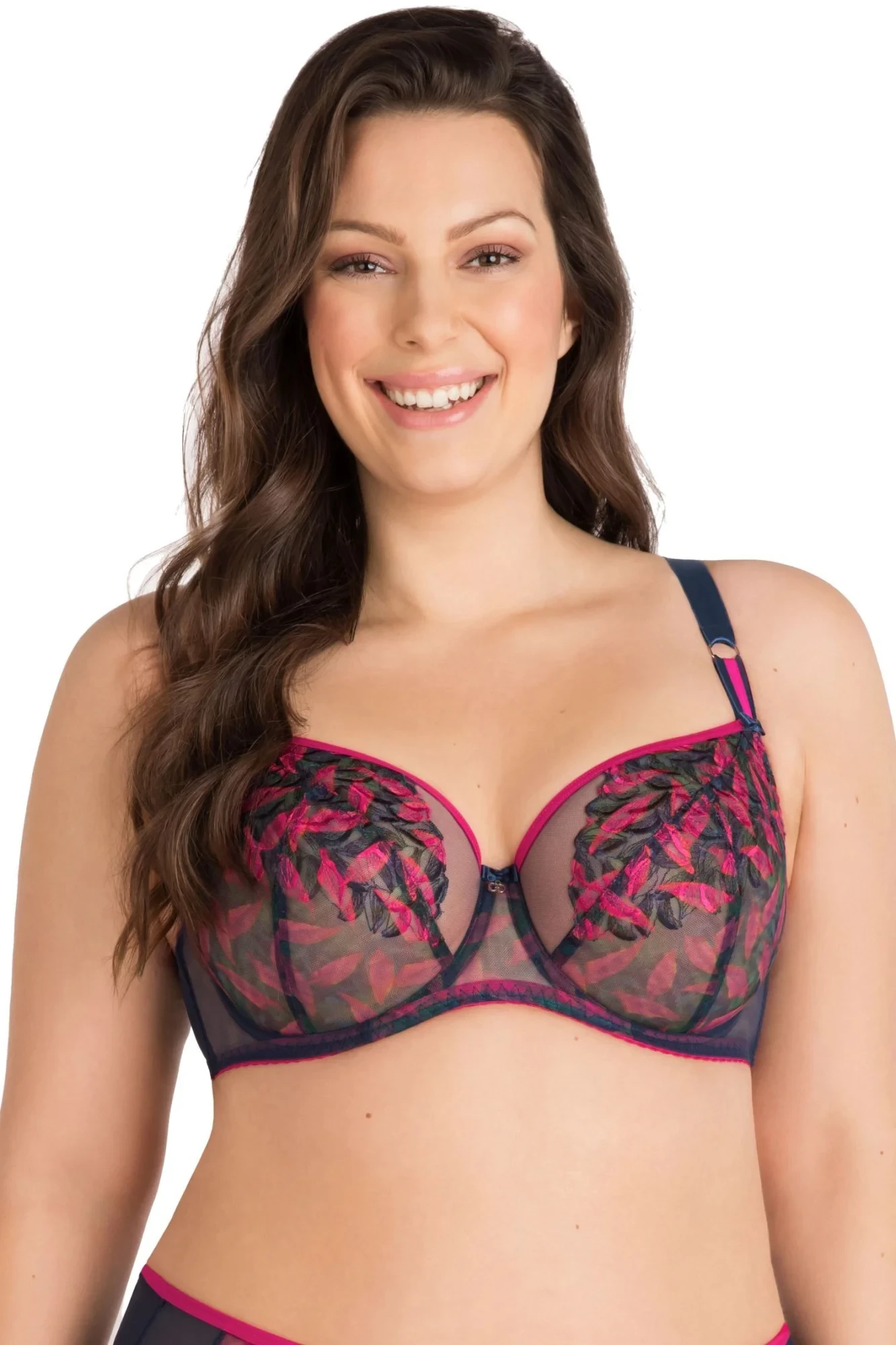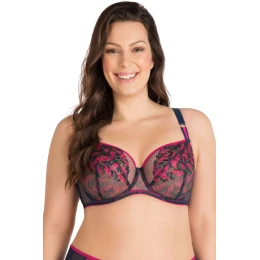 Dámská podprsenka 789 Kayla GORSENIA - tmavě modrá barva - měkká podprsenka - košíčky zdobené výšivkou - ramínka nastavitelná