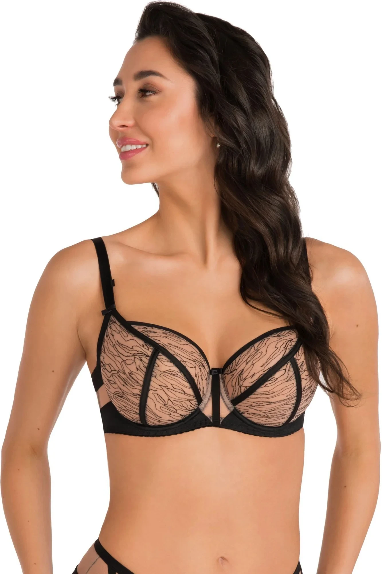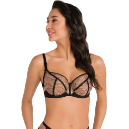 Dámská podprsenka 807 Cora GORSENIA - černá barva - měkká podprsenka - s kosticemi - z dvojité síťoviny s jemnou výšivkou - košíčky zdobené prošíváním - boční části z elastického mikrovlákna a síťoviny - odepínatelná ramínka