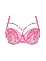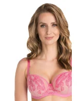 Dámská podprsenka 846 Lollipop GORSENIA - růžová barva - typ soft - měkká podprsenka s kosticemi - košíčky podšité síťovinou zdobené výšivkou - boky s kosticemi, které zabraňují prohýbání - nastavitelné a odepínatelné popruhy ve výstřihu - nastavitelná a neodepínatelná ramínka - zapínání na dva nebo tří háčky s třístupňovým nastavením