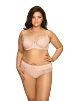 Košíčky modelu jsou vyrobené z pružné tkaniny podšité měkkou pěnou. Ve vrchní části košíčků je ozdobná výšivka. Košíčky ideálně obepínají poprsí a nadnáší jej. Pružný obvod pěkně přiléhá k tělu a dokonale podprsenku stabilizuje. Krajkový můstek je ozdobený jemnou mašličkou s ozdobou v barvě růžového zlata s logem. Mašlička a ozdoba dodávají celému modelu na jemnosti a půvabu. Komplet dokonale doplní smyslné klasické kalhotky, nebo kalhotky brazilky.