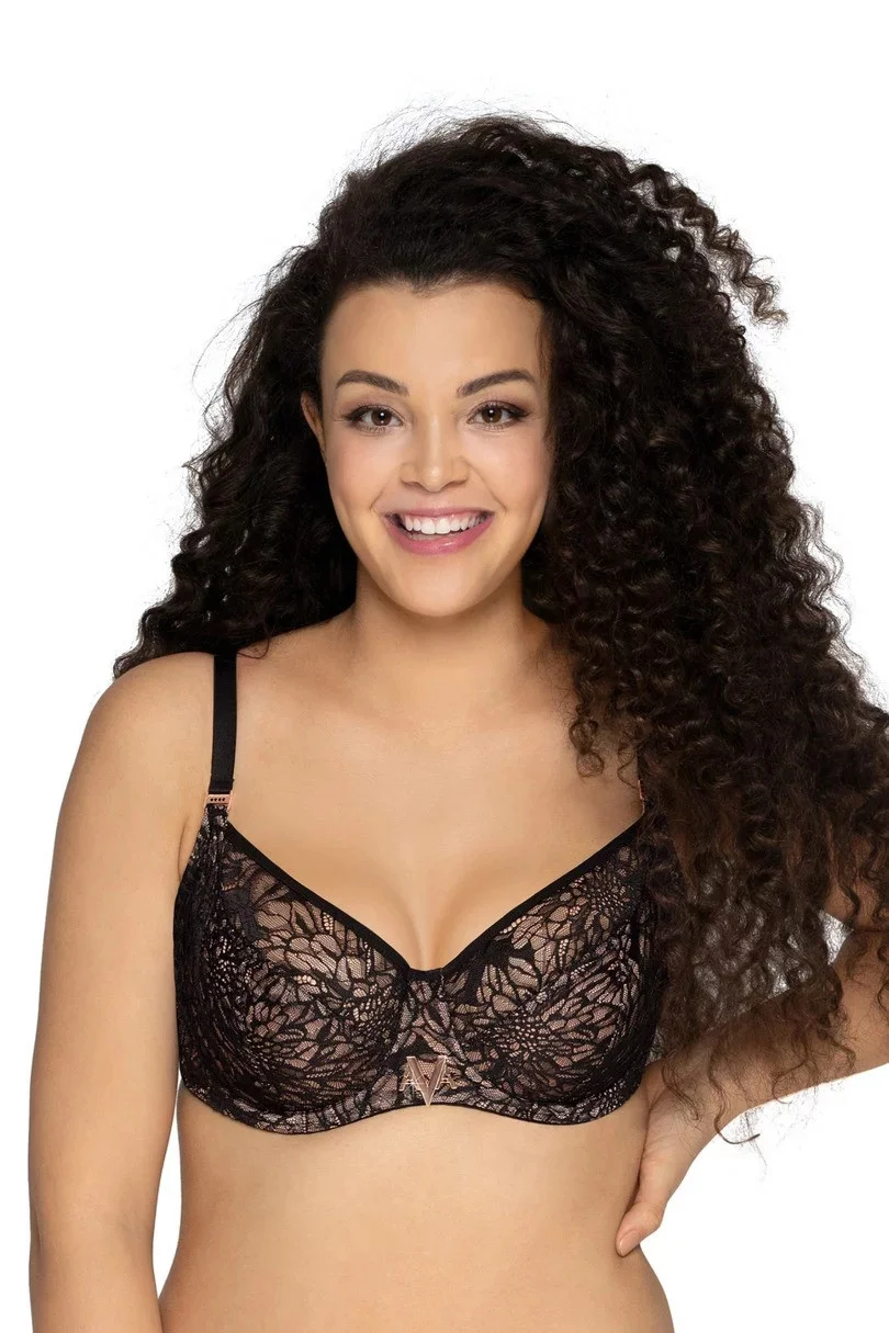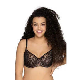 Podprsenka má osvědčenou konstrukci a střih typu K-1391. Model je vyrobený z tkaniny pokryté jemným materiálem. Černá lemovka krásně zvýrazňuje dekolt. Střih a konstrukce, kterou ocení i ty nejnáročnější ženy, poskytuje maximální pohodlí a komfort při nošení.