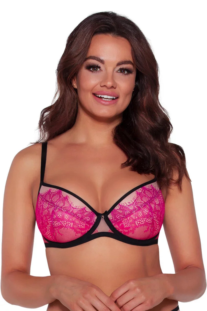 Energetický ró odráží barvu letní aury, proto nesmí chybět v prázdninovém stylingu. Model AV 2031 nabízí kontrastní barevnou kombinaci – béžovou pěnu pokrytou tylem tělové barvy a jemnou krajkou, vše orámované černými ramínky. Podprsenka push-up náležitě podpírá lákavě vyvýšená ňadra a koketně je odhaluje ve výstřihu, zatímco dívčí mašlička na spojnici prsou dodává na půvabu. Důvěřujte přepychovému Ambre!