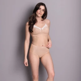 Pohodlná, měkká podprsenka Anita bez kostic, vyrobená z měkkého a prodyšného mikrovlákna s potiskem imitujícím krajku. Odlehčuje oblast ramen a krku a zajišťuje nejvyšší pohodlí. Trojdílná konstrukce košíčků s bočními lištami dokonale tvaruje poprsí.