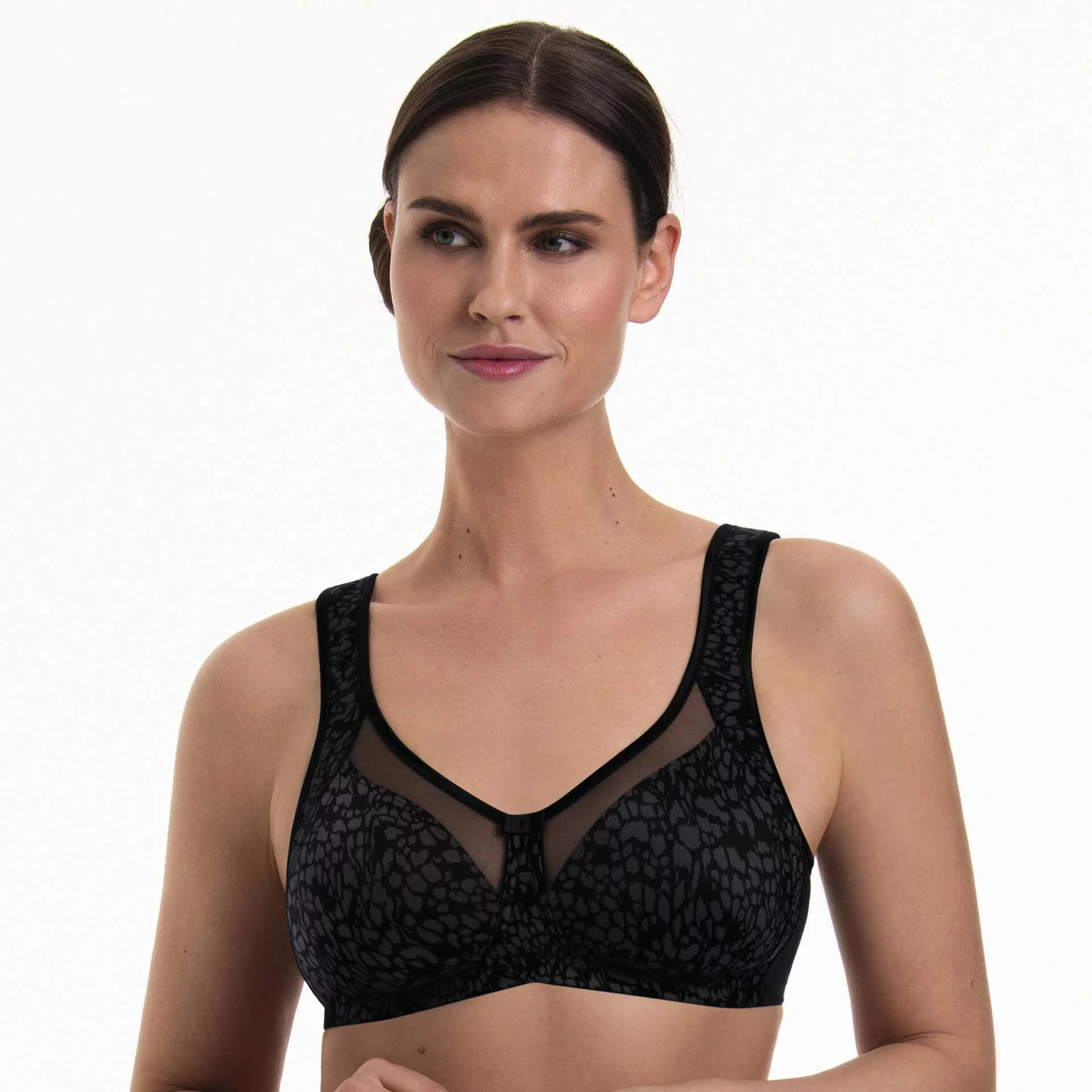 varované podprsenky CLARA ART s abstraktním leopardím vzhledem kombinují divokou přírodu a grafické tvary pro moderní výrazný vzhled. Potisky v černé barvě s lávově šedou dodávají jemný vzhled. Poloprůhledné lemy vytvářejí vzdušné kouzlo Clary a zvýrazňují tak dekolt. Pevný obvod zajišťuje bezpečný a příjemný komfort nošení až do velkých košíčků. Široká komfortní ramínka odlehčují ramenům. Clara Art – Ciťte se dobře ve velkém stylu.