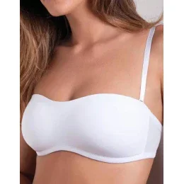 Dámská jemně vyztužená bezkosticová podprsenka značky Cotonella. Korzetová podprsenka je zcela hladká, má širší střed a boční zpevňující pružné kostice. Ramínka jsou oddělávací a lehce délkově nastavitelná. Po obvodu na vnitřní straně jsou aplikovány silikonové proužky pro dokonalé držení na těle. Zadní zapínání je na dva háčky a tři pozice.