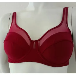 - Dámská podprsenka s kosticí, nevyztužená, s tylovou vrchní částí košíčků. Posouvací ramínka, zapínání na zádech.