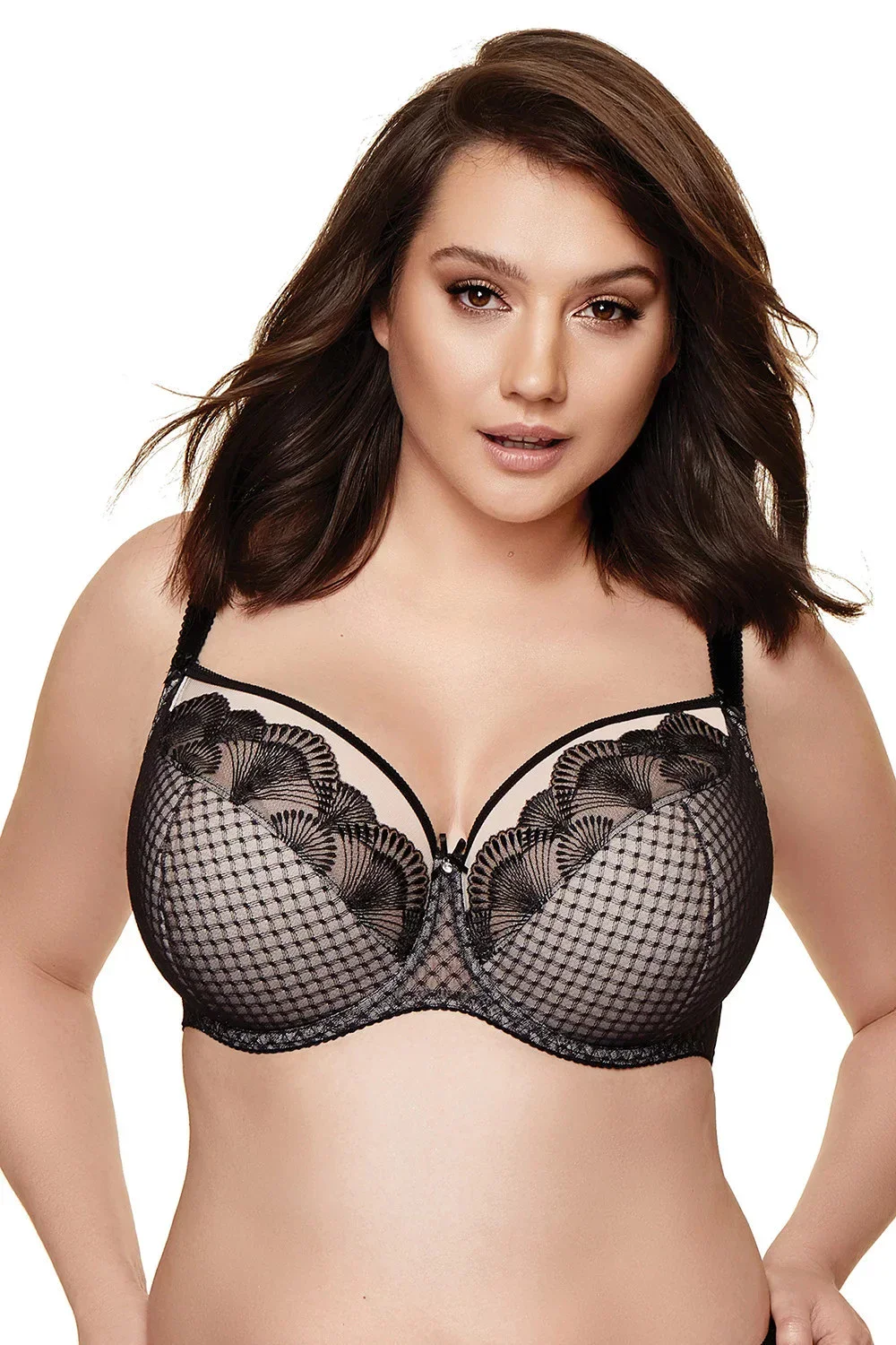 Podprsenka od firmy Gorteks. Model Dolce/B3. Má dráty, které prsa vhodně tvarují. Svislé velrybí kosti zasazené po stranách. Výrobek má nastavitelné popruhy bez možnosti odepnutí. Kovové háčky na popruh. Podprsenka se zapínáním na háčky a oči. Upevňovací bod: vzadu.