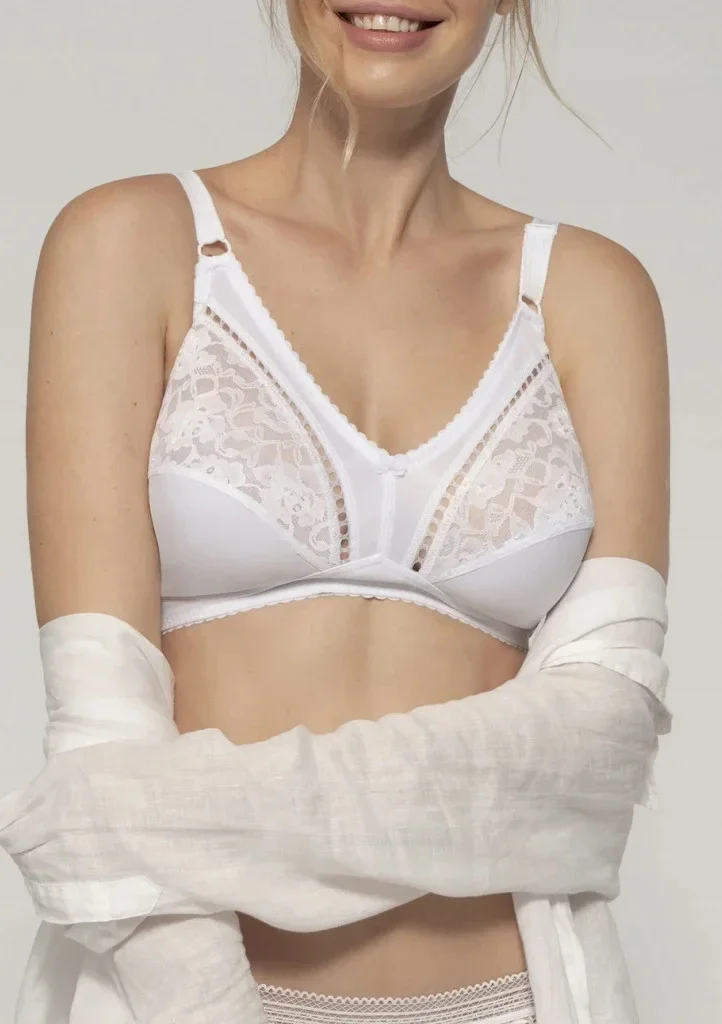 Klasická bezkosticová podprsenka od značky Dorina je určena pro dámy, které mají rady pohodlí. Podprsenka je bezkosticová a maximálně pohodlná. Je zdobená částečně krajkou s květinovým motivem. V oblasti obvodu je zpevněná měkkou gumou, která zajišťuje, aby poprsí drželo v požadované výšce. Má měkká, široká, vpředu délkově nastavitelná ramínka zajišťující své majitelce komfort při jejím nošení. Zapínání je dvouřadové na tři pozice.
