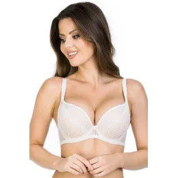 Model je vhodný pro ženy s menším poprsím, jelikož krásně nadnáší, zvětšuje a zvýrazňuje poprsí. Košíčky mají béžovou barvu a jejich spodní část pokrývá bílá krajka. Vrchní část košíčků tvoří síťovina s malými puntíky. Obvod je ušitý z bílého mikrovlákna. Dekolt zdobí ozdoba ve tvaru kolečka. Krajka a doplňky jsou vyrobené z velmi kvalitních francouzských materiálů. Ramínka je možné nastavit, ale nelze je odepnout.