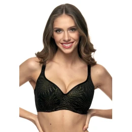 Dámské plavky Fantasy z nové kolekce Elegant. Dámský horní plavkový díl v elegantním černém provedení má jemně vyztužené nařasené košíčky s kosticemi a vysoký střed. Střih košíčků a široký obvod podprsenky s bočními pružnými kosticemi Vám zaručí pevné a pohodlné nošení a přitom Vám vytvaruje krásný a plný dekolt. Podprsenka má pevně všitá, nastavitelná ramínka. Zadní zapínání je ukončeno pevně všitou sponou na záháknutí. U těchto plavek lze libovolně kombinovat spodní a horní díl v řádu zadaných velikostí jednotlivých dílů. Plavky jsou české výroby a koupí tohoto výrobku podpoříte produkci českého oděvního průmyslu.
