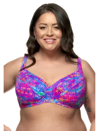 Dámské plavky Fantasy z kolekce Amy. Dámský horní plavkový díl má lehce vyztužené podšité košíčky s kosticemi. Podprsenka má klasický střih s vyšším středem a je vhodná i pro větší poprsí. Širší ramínka jsou pevně všitá, délkově lehce nastavitelná. Obvod podprsenky je vyšší, vyztužen flexibilními silikonovými kosticemi, které se Vám přizpůsobí. Zapínání je umístěno v zadní části obvodu pomocí kovové spony. U těchto plavek lze libovolně kombinovat spodní a horní díl z dané kolekce.
