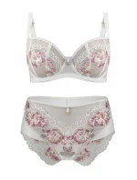 Košíčky jsou vyrobené ze síťoviny, na kterou jsou našité krajkové květy. Celý model je provedený ve smetanové barvě. Konstrukce modelu dokonale zvýrazňuje poprsí.