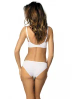 Dámská podprsenka 058 Gorteks - bílá barva - neodnímatelná ramínka, zdobená mašličkou - vyztužené košíčky - košíčky jsou zdobené jemným vzorem - jednoduchý design - mezi košíčky decentní mašlička na ozdobu