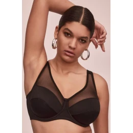 Podprsenka pěkně nadnáší i větší poprsí a poskytuje mu oporu. Standatní košíčky jsou spojené s jemným tylem. Košíčky jsou uvnitř pokryté bavlnou. Široká ramínka jsou zpevněná bavlnou a měkkou pěnou. Podprsenka má třířadové zapínání.