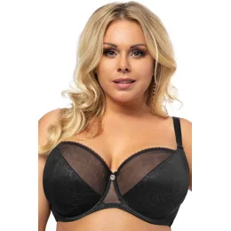Sexy černá měkká dámská podprsenka K 461 Black orchid Gorsenia - spodní části košíčků a můstek jsou vyrobené z látky ozdobené vytlačovaným vzorem - vrchní části košíčků jsou ušité ze dvou vrstev jemného tylu olemovaného ozdobnou úzkou krajkou - střed modelu je ozdobený mašličkou s přívěskem - košíčky jsou vytvarované drátkem - boky jsou vyrobené z pevnější lycrové látky a jsou ozdobené vytlačovaným vzorem - navíc jsou boky zpevněné svislými kosticemi - hladká ramínka je možné nastavit, ale nelze je odepnout - šířka ramínek závisí na velikosti a rozměru podprsenky - v místě spojení ramínek s košíčky je malá ozdobná mašlička - model se zapíná dvou, nebo třířadovými háčky (v závislost na velikosti podprsenky) s trojí možností nastavení obvodu