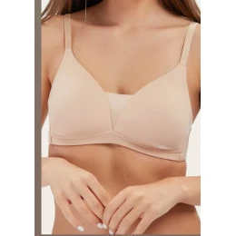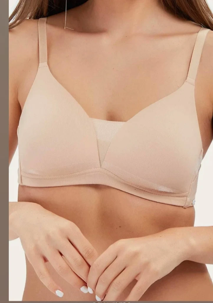 Dámská podprsenka od italské značky LEILIEVE. Bavlněná podprsenka klasického střihu s vyšším středem je vhodná na běžné každodenní nošení. Podprsenka je velmi pohodlná a prodyšná. Košíčky jsou vyztuženy, bez kostic, hladké a jednoduché. Mezi košíčky je všitý pružný cíp látky. Pod prsy mají košíčky pevnější šití. Obvod je velmi pružný, v bocích jsou všity flexibiní kostice a aplikované překřížení pro maximální podporu. Tenká ramínka jsou pevně všitá lehce délkově nastavitelná, hladká. Podprsenka se zapíná v zadní části na dva háčky a čtyři pozice.