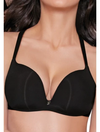 Dámská super push up podprsenka od italské značky Leilieve. Podprsenka s velmi nízkým středem je vhodná do hlubokých výstřihů, ale díky své pohodlnosti i na celodenní nošení. Podprsenka pomocí super push up efektu pozvedne Vaše poprsí a dodá mu plnější optický vzhled. Vyztužené bezkosticové hladké košíčky upevní poprsí v požadované výšce a tak opticky zeštíhlí Vaši postavu a zároveň úžasně zvýrazní Váš dekolt. Výztuž je u podprsenky pěnová. Podprsenka má délkově nastavitelná ramínka, která se dají vzadu překřížit a tím vytváří Váš dekolt ještě plnější. Pružný obvod podprsenky je z velmi příjemného, mírně chladivého materiálu. Zapínání má dva háčky na čtyři pozice.