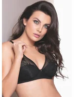 Dámská luxusní braletka od italské značky Leilieve. Podprsenka je bezkosticová, má hladké košíčky, které jsou potaženy dokonale jemnou krajkou sahající až k ramenům. Kraječka se nerýsuje pod oblečením. Obvod podrsenky je taktéž krajkový. Košíčky jsou lehce vyztuženy. Mezi košíčkami je malá ozdůbka se štrasovými kamínky. Pevně všitá ramínka jsou lehce délkově nastavitelná a mají kovové stříbrné spony. Zadní zapínání je na dva háčky a čtyři pozice.
