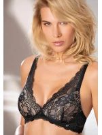 Dámská luxusní braletka od italské značky Leilieve. Podprsenka má hladké tělové košíčky bez kostic, které jsou pokryty krásně dekorovanou kraječkou sahající až k ramenům i celý krajkový obvod. Braletka má vyztužené košíčky. Pevně všitá ramínka jsou lehce délkově nastavitelná a mají kovové stříbrné spony. Zadní zapínání je na dva háčky a čtyři řady.